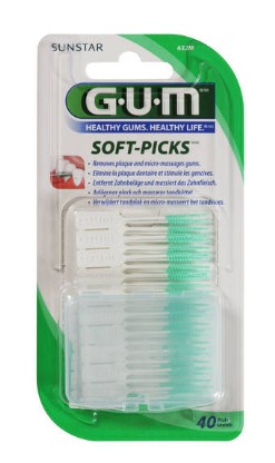 • GUM® Soft-Picks scivola senza difficoltà negli spazi interdentali per rimuovere placca e residui alimentari. Le sue setole soffici e flessibili stimolano delicatamente le gengive per promuovere la circolazione del sangue ed il mantenimento di gengive forti e sane.