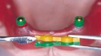 Provare la protesi e controllare che gli spazi per le cappette nella resina siano sufficientemente ampi. Riempire con resina autopolimerizzante e posizionare